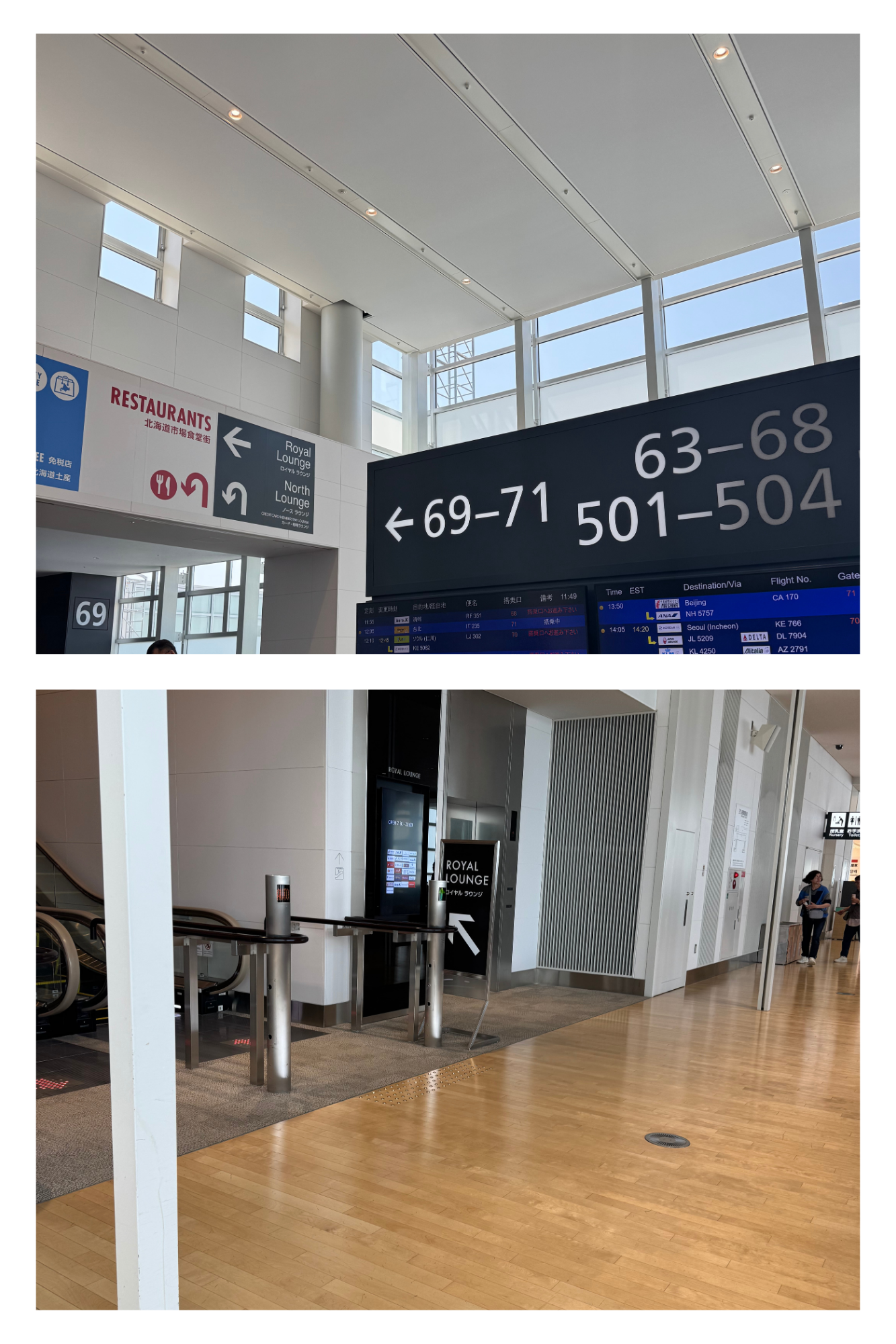 라운지 위치는 69번 게이트에서 71번 게이트로
