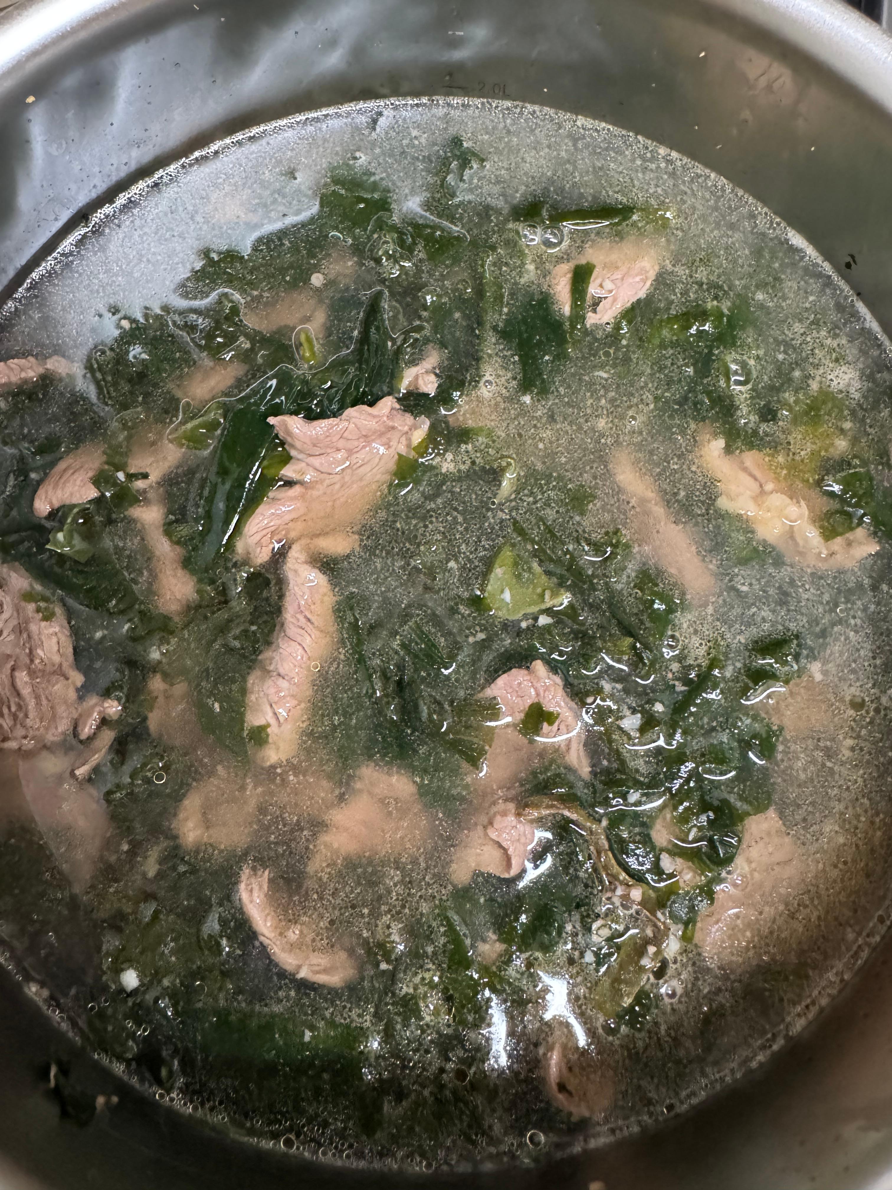 미역과 소고기를 넣은 후