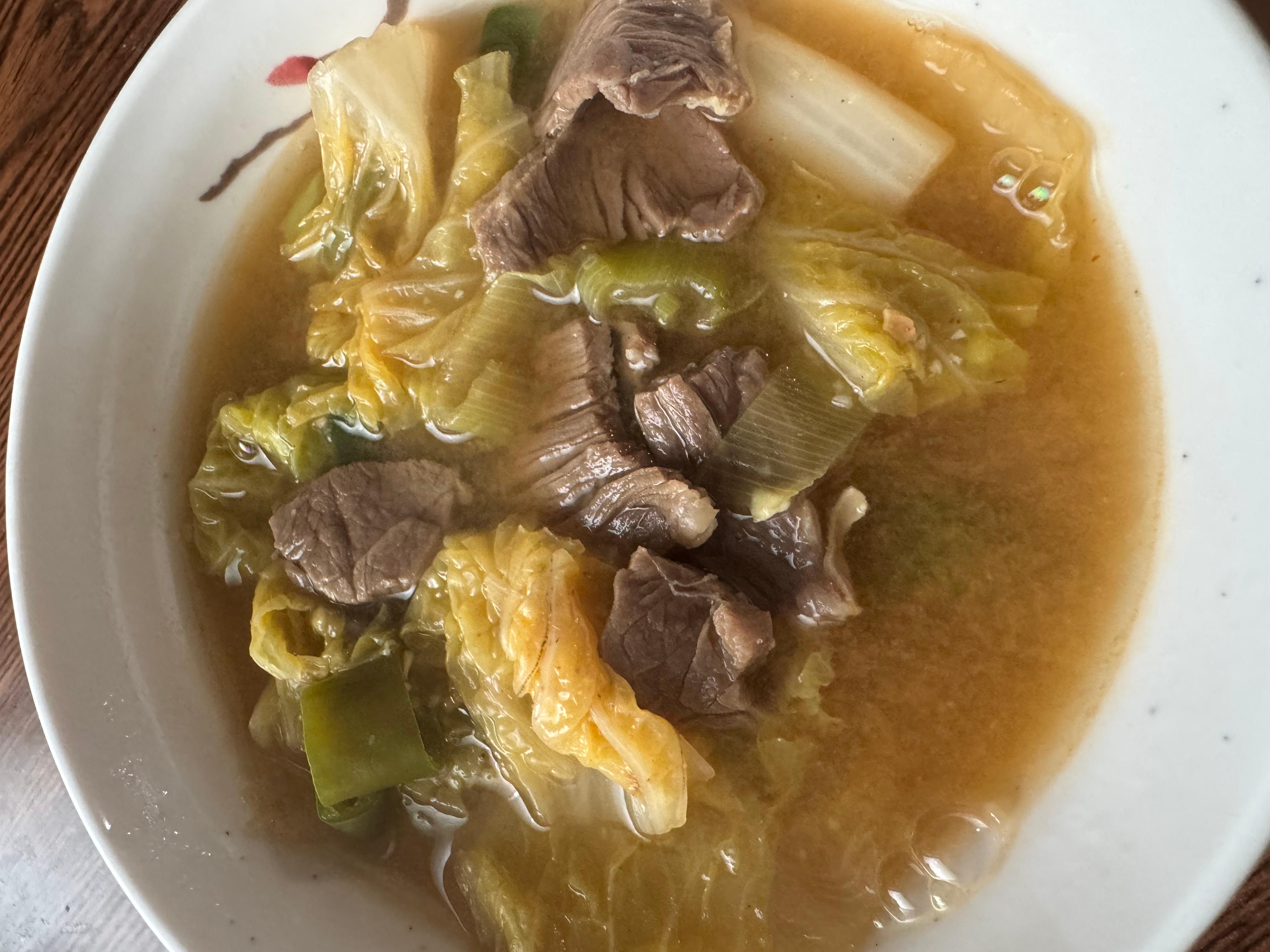 소고기 배추 된장국이예요.