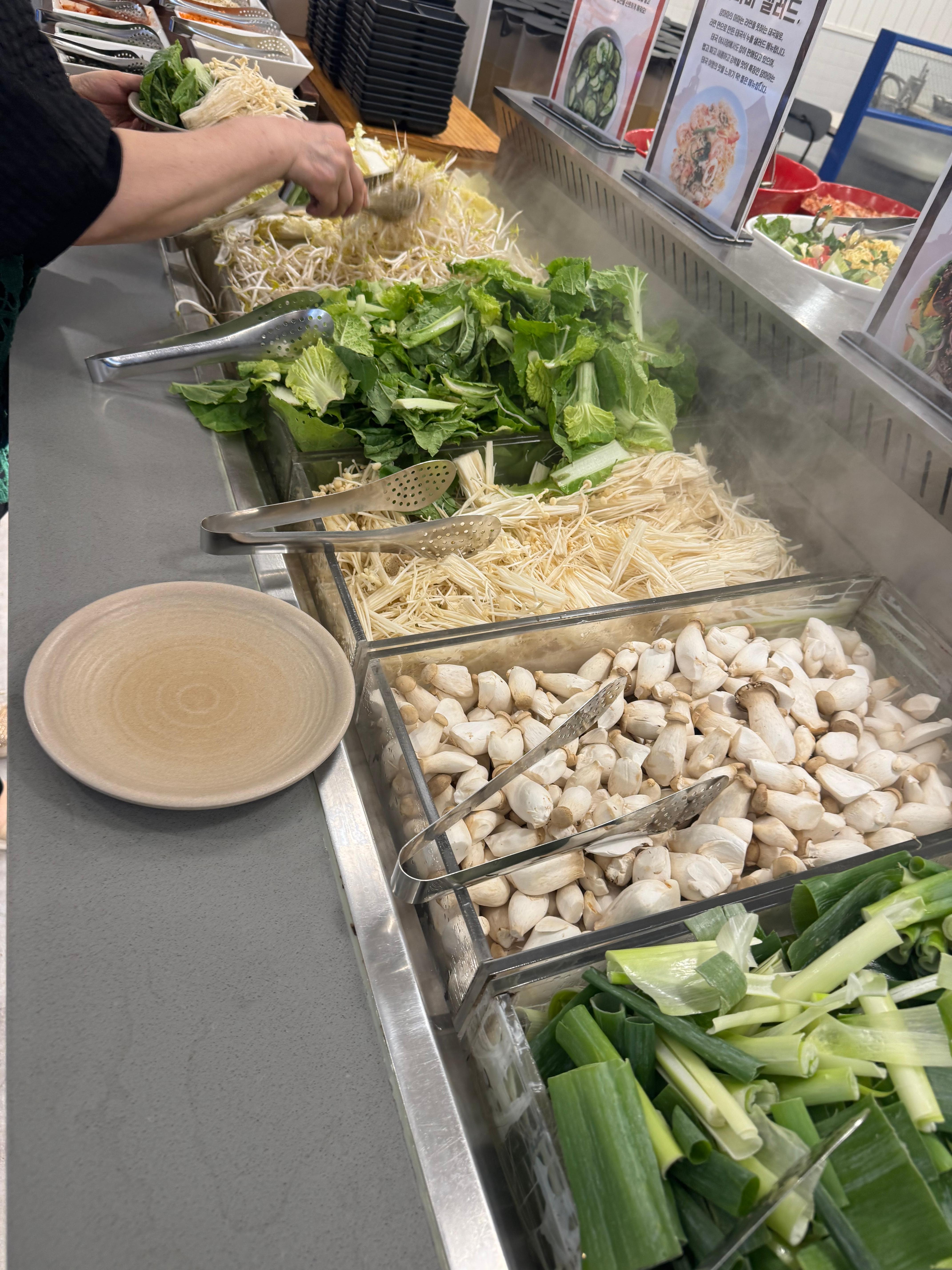 채소를 먼저 가져와서 훠궈에 넣어주고