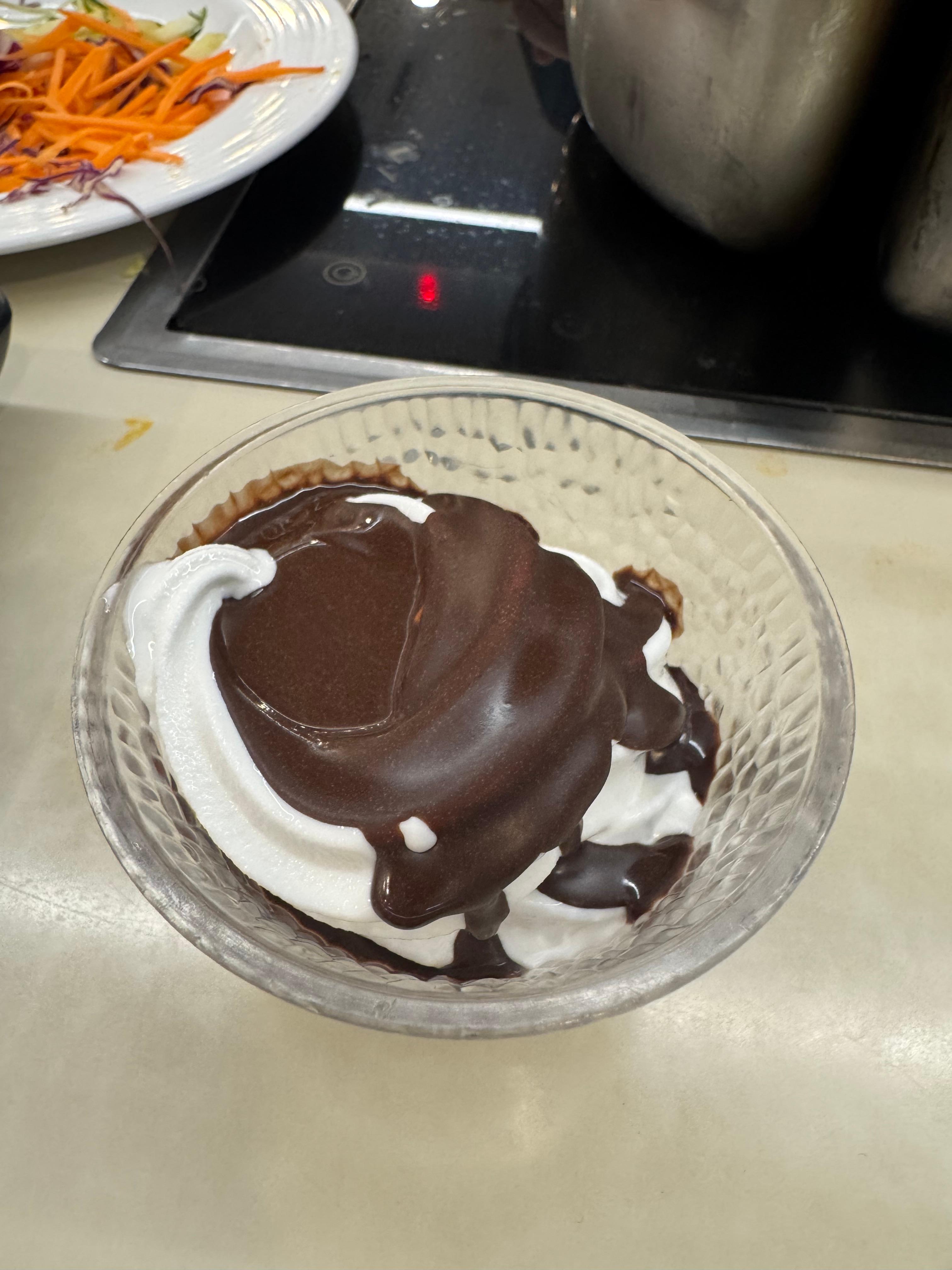 초코를 얹어서 먹었어요.
