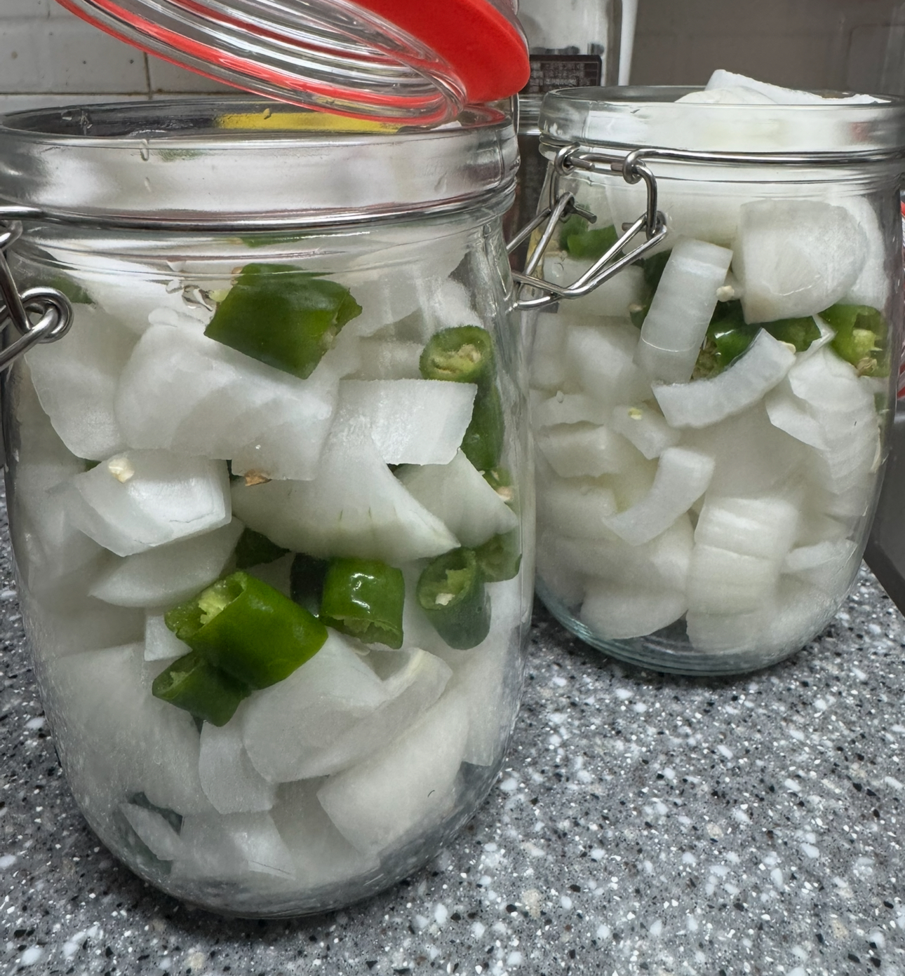 양파와 청양고추를 넣은 용기에