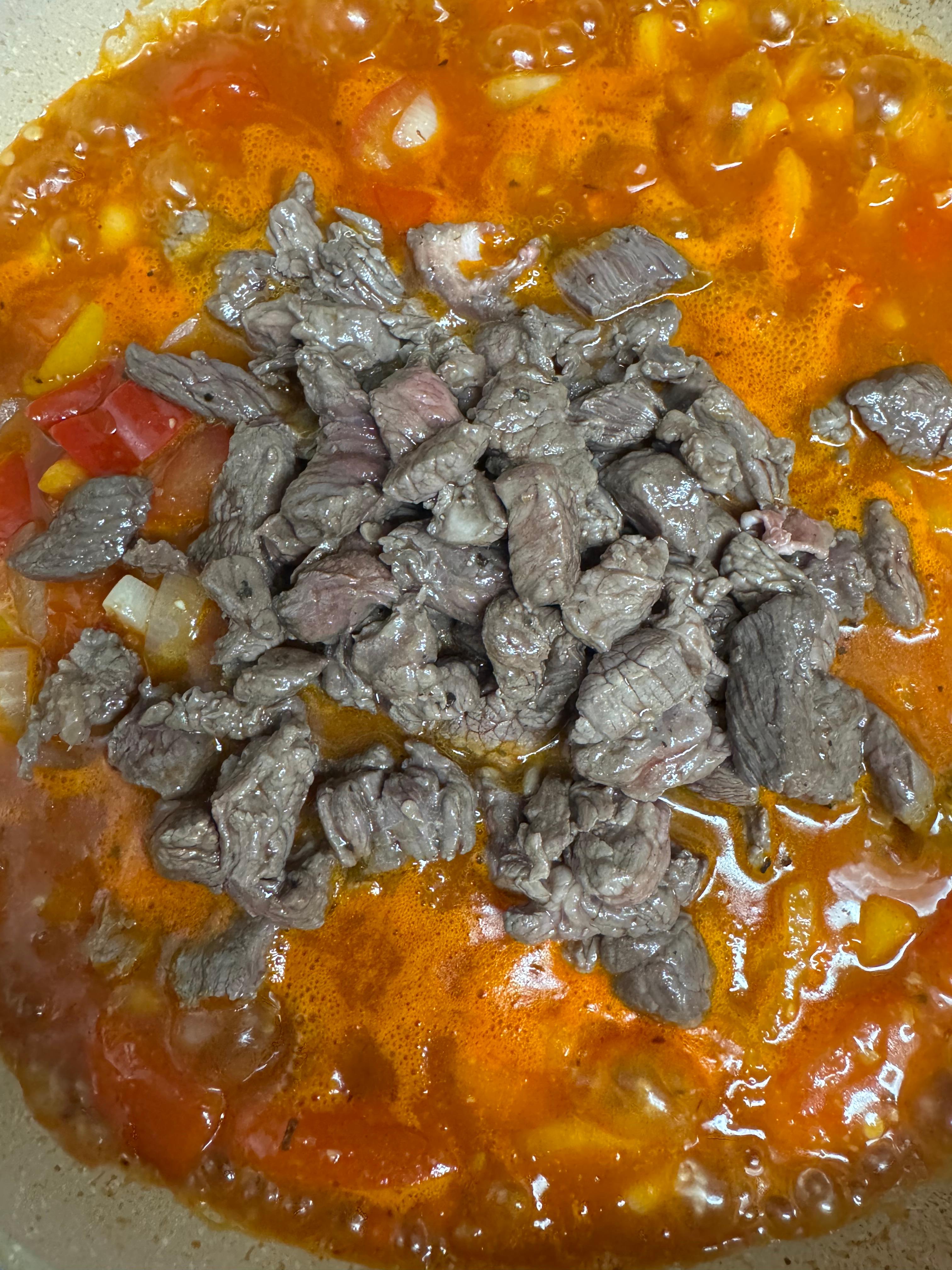 소고기를 넣어 토마토 비프 스튜를 만들었어요.