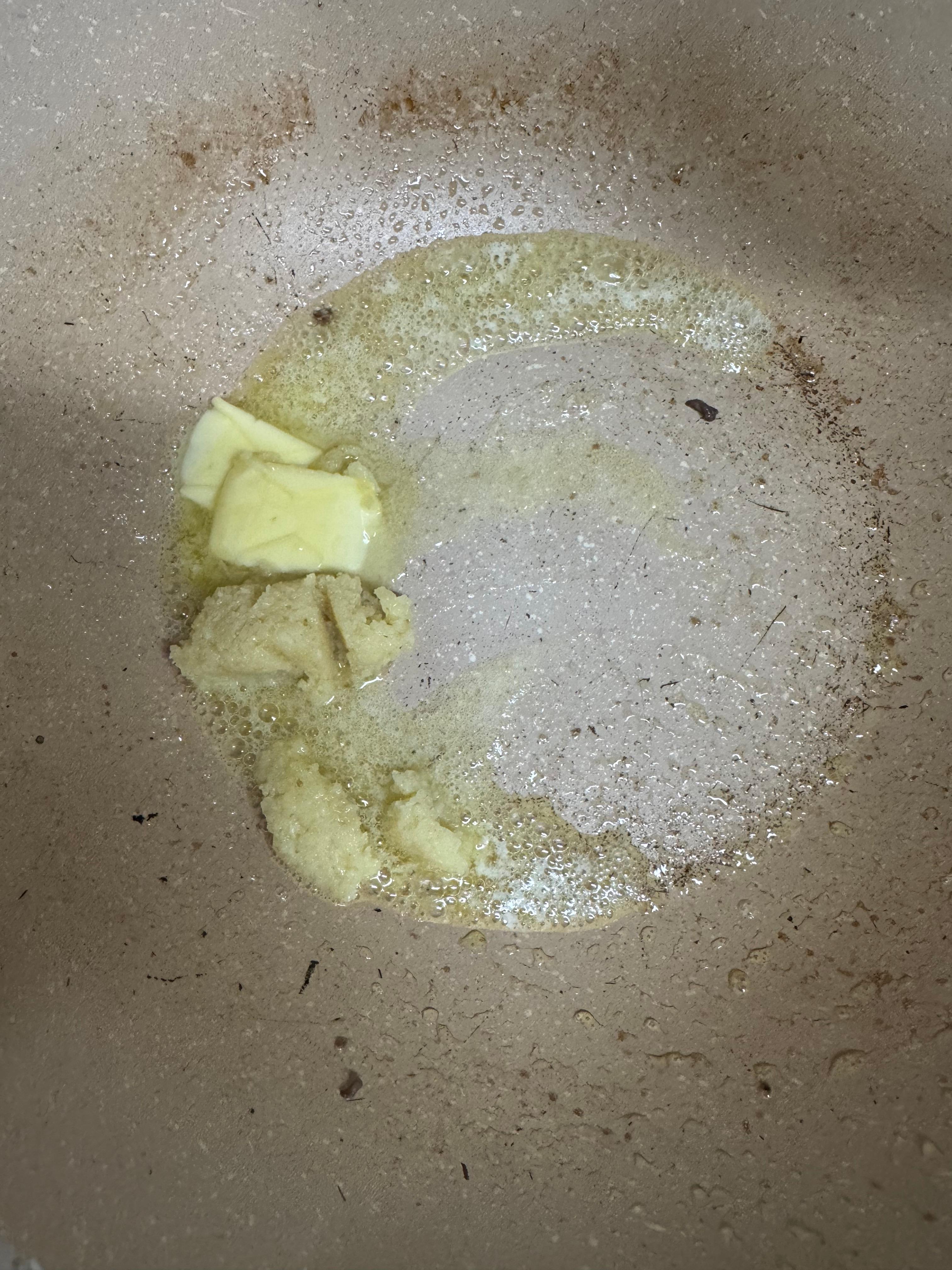 같은 팬에 버터와 다진마늘을 넣어주어