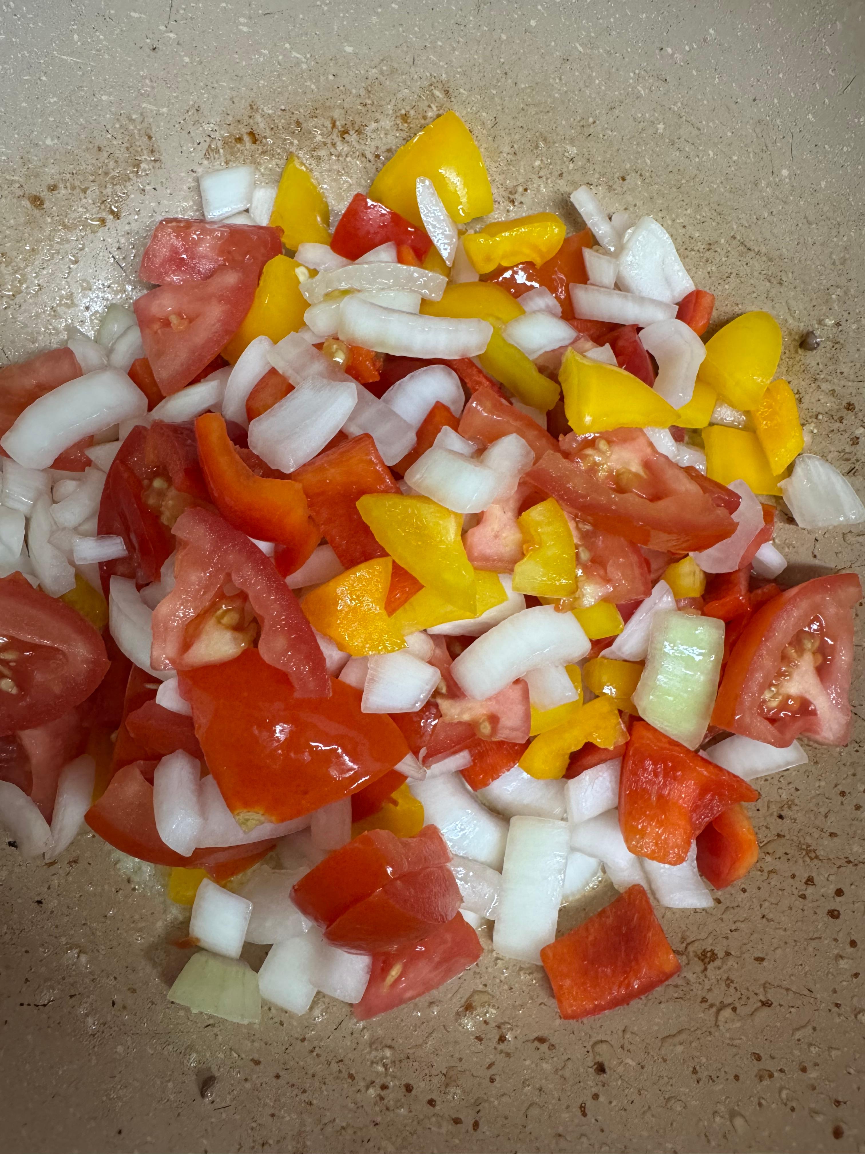 거기에 토마토 양파 파프리카를 먹기좋게 썰어서 넣고